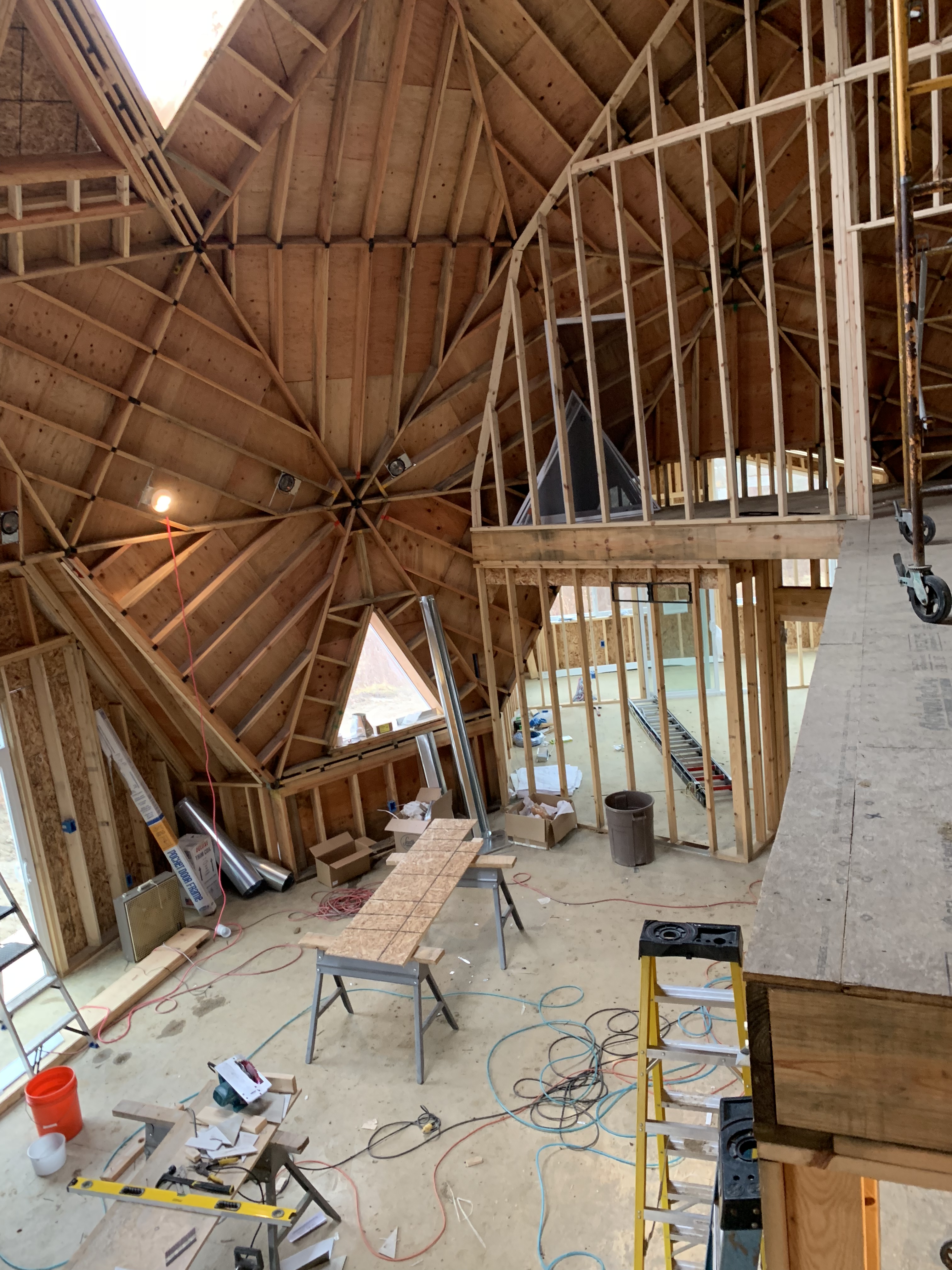 View from the staircase Posted by brokenbranchfarm on December 20, 2018December 20, 2018 I am standing almost at the top of the stairs to take this picture. Our house has so much drama in the structure. There will be a half wall along the edge of the balcony.