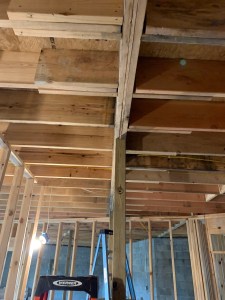 Scabs Posted by brokenbranchfarm on January 30, 2019January 30, 2019 The scabs bridge the gap between the joists and the beam, and then a triple or double wide joist hanger will wrap around the joists and scabs to secure them to the beam