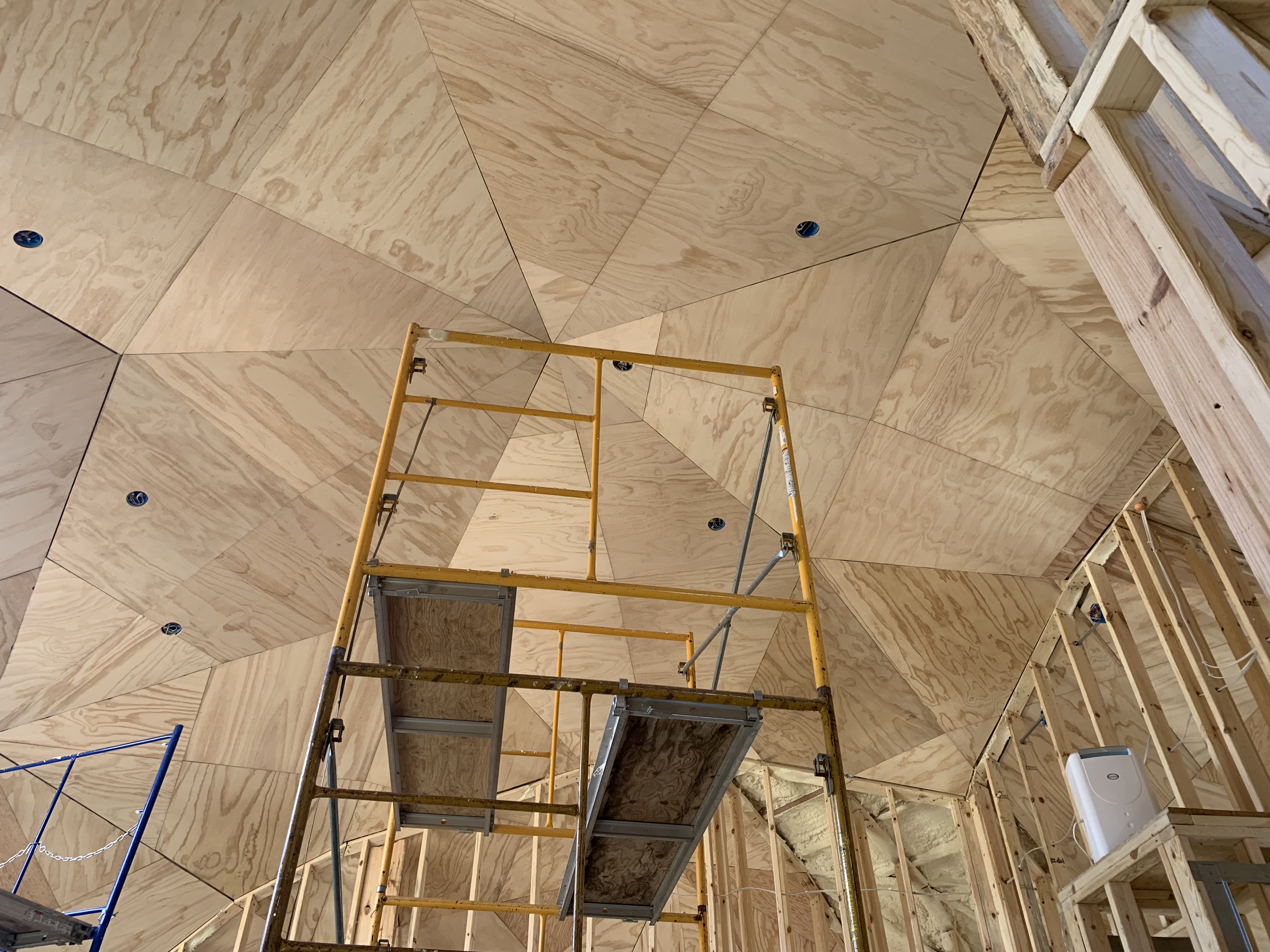Plywood installation completed top of dome Posted by brokenbranchfarm on March 30, 2019March 30, 2019