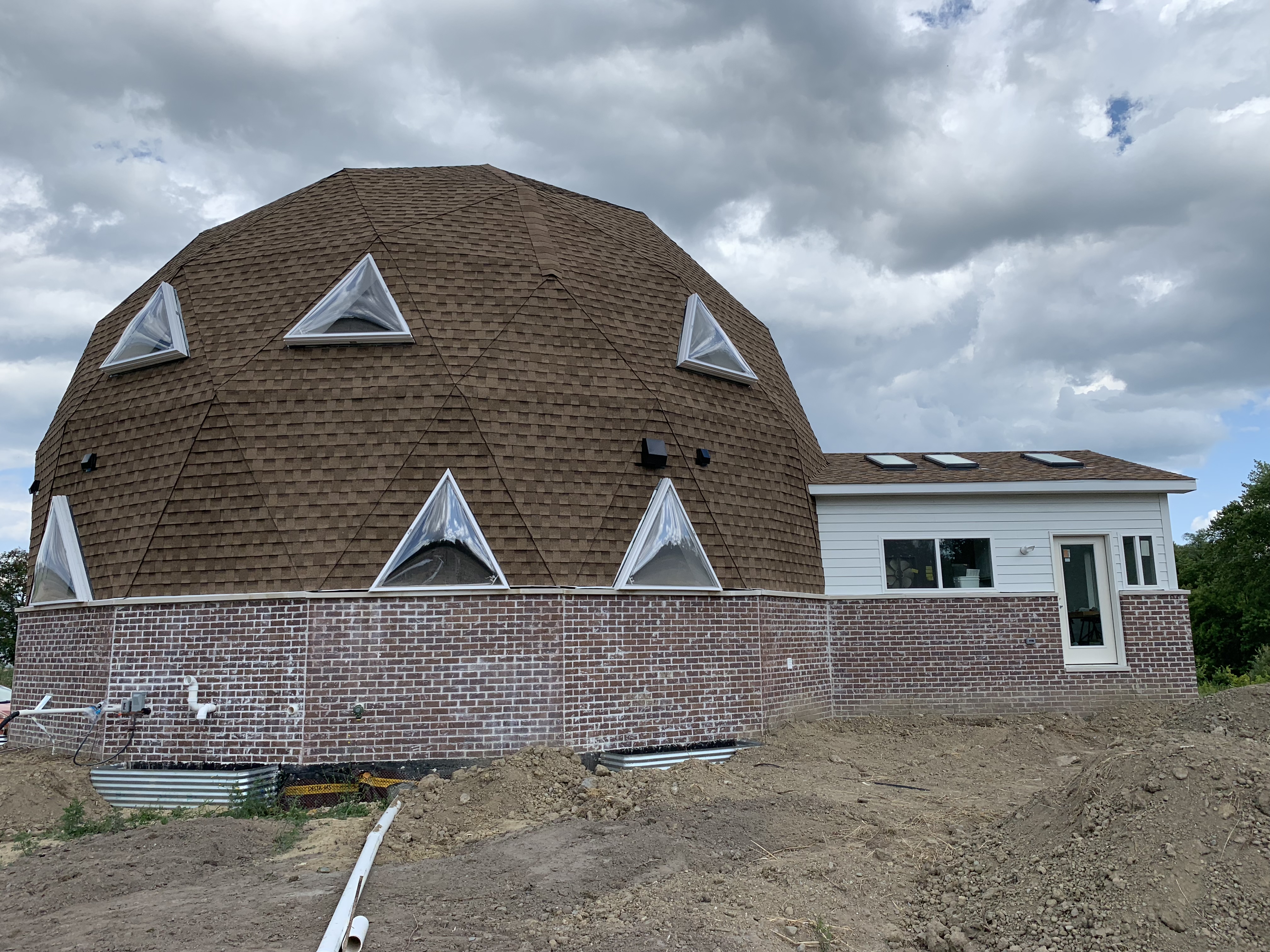 Final grade begins Posted by brokenbranchfarm on August 10, 2019August 10, 2019 Finally you can see where the dirt will be at the end grade. Covers up the tar and dimple board.